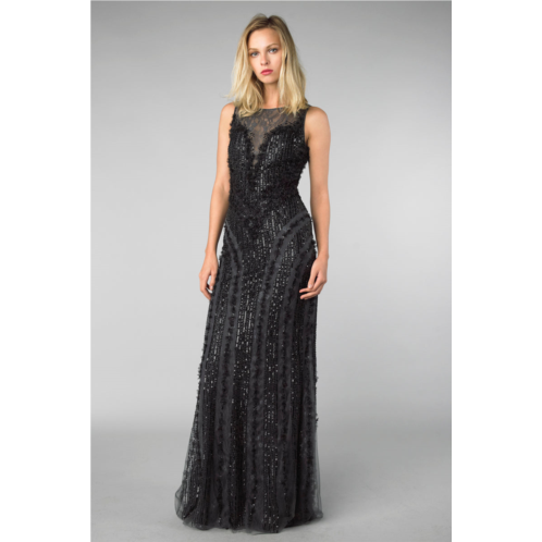 [US] Basix Black Label sleeveless sequined evening dress