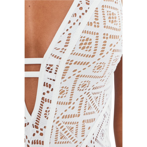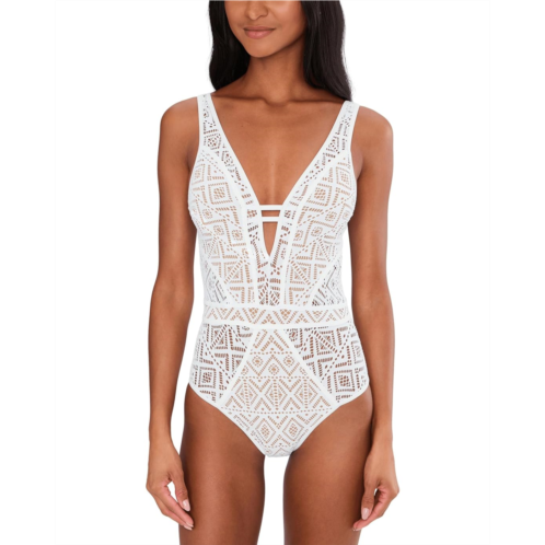[US] Womens BECCA Classic Color Play Crochet Plunge One-Piece