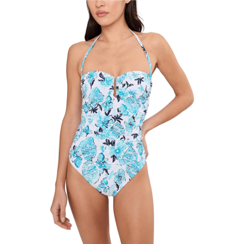 - Dive into elegance with the Lilly Pulitzer Farlee One Piece, a strapless sensation that seamlessly blends style and comfort. The ruched top and U-shaped hardware detail elevate your beach look, while molded cups and waist shirring provide moderate coverage, camouflaging and concealing for a flawless silhouette.