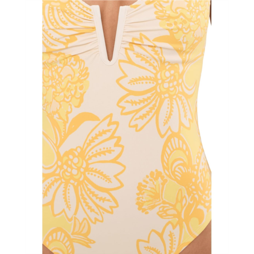 - Perfect your beach-ready look in the Lilly Pulitzer Clode One Piece. Featuring a split neckline, adjustable shoulders straps, moderate rear coverage, and shirring in front.