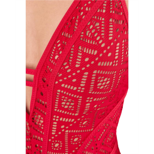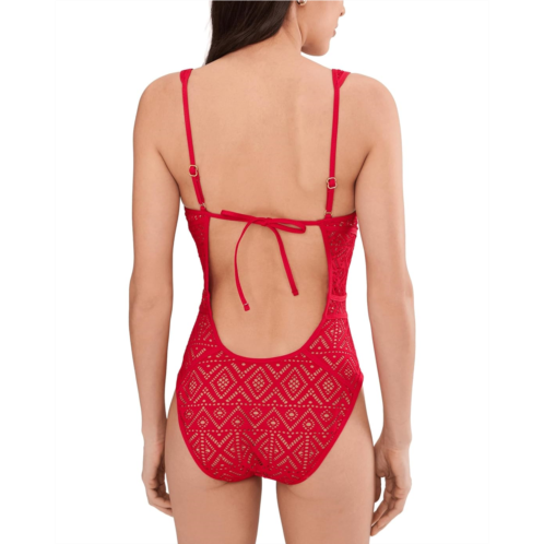 [US] Womens BECCA Classic Color Play Crochet Plunge One-Piece