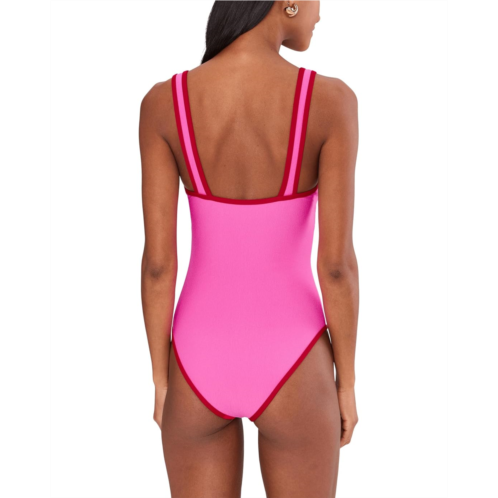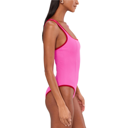 - A sculptural swim essential, Beach Riot Cala One Piece. Crafted as a sleek one-piece silhouette, it features a clean pull-on style that hugs just right while staying comfortable all day long. The sleeveless cut keeps the look minimal and contemporary, letting the bold details shine. Eye-catching red piping frames the square neck beautifully, adding a pop of contrast that elevates the entire swimsuit from simple to standout. Designed to smooth, support, and flatter, this one-piece moves seamlessly from lounging by the pool to spontaneous dips in the ocean. The textured fabric adds depth and a luxe feel, while the streamlined fit ensures a confident, stay-put wear.