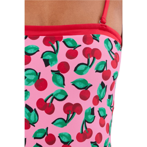 - The Beach Riot Amber One Piece brings playful polish to every splash with its eye-catching cherry print and sleek colorblocked banding that defines and flatters in all the right places. Designed with an easy pull-on silhouette, this swimsuit offers effortless wear and a smooth, comfortable fit that moves with you from beach walks to sunset dips. Removable straps let you switch up your vibe, rock it strapless for a clean, modern look, or add the straps for extra support and confidence. The streamlined one-piece design provides just the right amount of coverage while still feeling bold, fun, and fashion-forward.