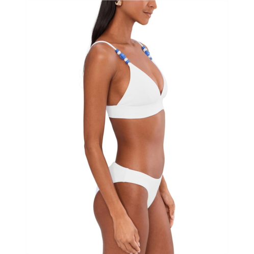 - Engineered for impact, the BECCA by Rebecca Virtue Streamline High Neck Top offers an edgy aesthetic without compromising on essential, secure support. Crafted with a fine rib texture, this halterkorea silhouette hugs your curves with a smooth, flattering fit that feels as good as it looks. The Modern Edge wide band rib construction offers enhanced support, making it perfect for lounging, swimming, or styling beyond the beach. At the center front, multi-color marbleized beads add an elevated, artful touch that instantly sets this piece apart. Removable cups let you customize coverage and shaping to suit your comfort, while the secure hook-and-eye closure ensures a stay-put fit you can trust. Bold yet refined, this high-neck top blends statement details with everyday wearability.