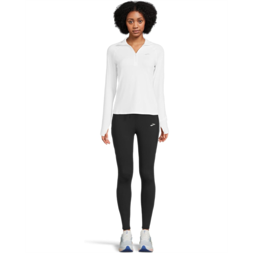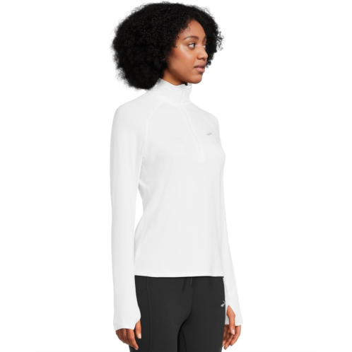 - Engineered for the modern runner, the Brooks Dash 1/2 Zip 3.0 is your go-to layering essential, delivering distraction-free comfort with lightweight warmth and next-level mobility. Crafted in a semi-fitted silhouette for a streamlined look, it's built with advanced stretch fabric that adapts to your every move-whether you're pacing through early morning miles or cooling down post-run. The collared neck with a half-zipper design offers adjustable ventilation, while thumbholes keep sleeves securely in place for a stay-put feel. Reflective branding enhances visibility in low-light conditions, ensuring you're seen and safe. The pull-on design and smooth construction eliminate bulk and chafing, making it ideal for layering without compromising breathability or performance.