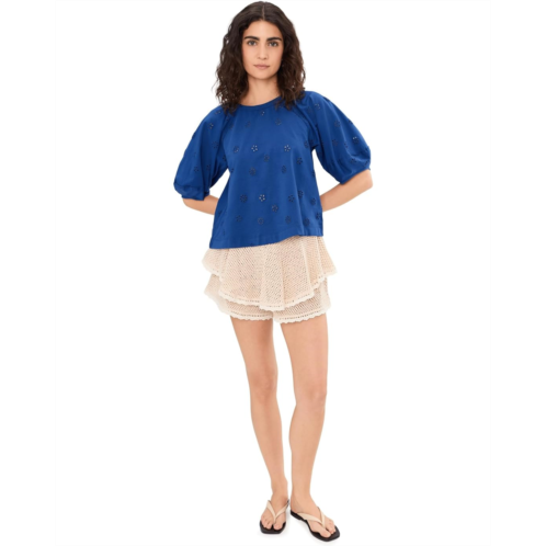 - Subtly detailed and designed to be worn on or off the shoulder this tee features a ribbed cotton blend fabrication stirring details along the sides and relaxed short sleeves for an effortless eye-catching style. this top features crew neckline, standard length, stirring along the sides, and scoop bottom hem.