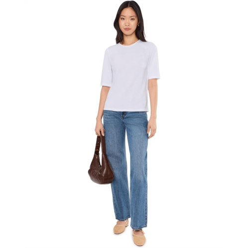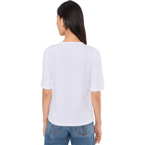 [US] Womens Eileen Fisher Cross Hatch Stretch Jersey Crew Neck Elbow Sleeve Top
