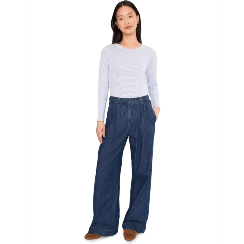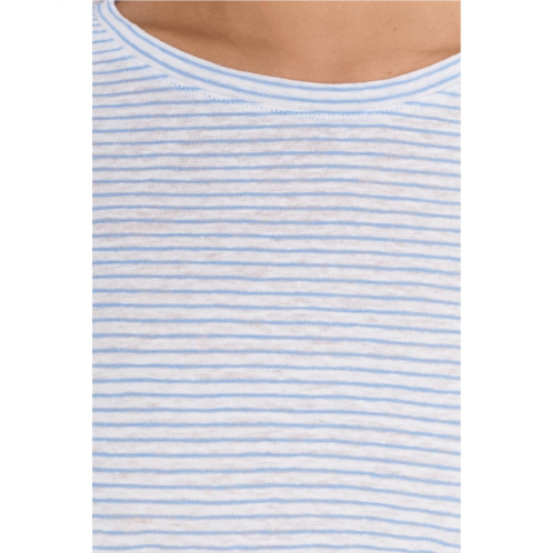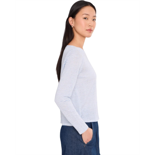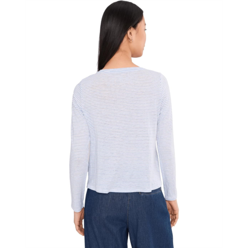 [US] Womens Eileen Fisher Petite Striped Organic Linen Jersey Crew Neck Long Sleeve Tee