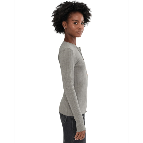 - Effortless and feminine, this cotton pointelle Henley is a wardrobe staple designed to layer and live in. The breathable knit offers subtle texture, while delicate picot trim softens the neckline and sleeves for a refined finish. Perfect for pairing with relaxed denim or slipping beneath a cozy cardigan.