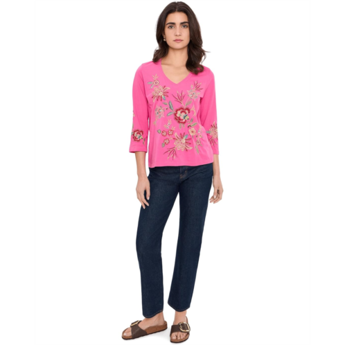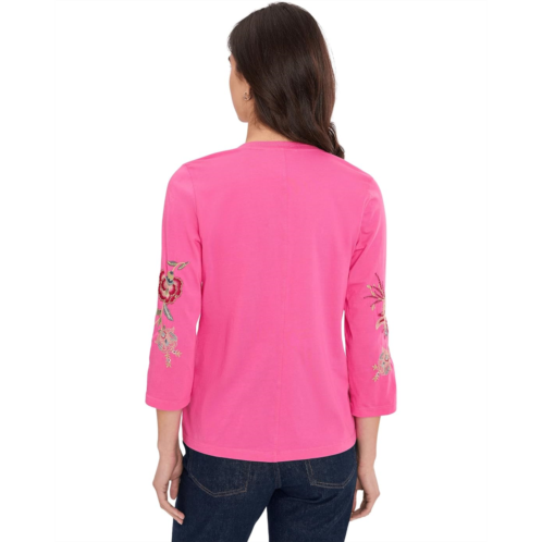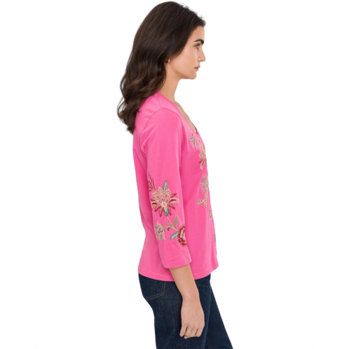 [US] Womens Johnny Was 3/4 Sleeve Trapunto V-Neck Tee