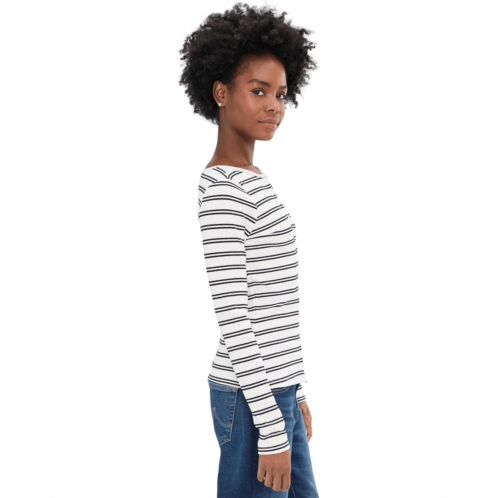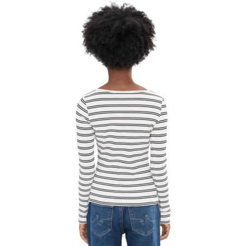 - The Sanctuary Button Front Ribbed Top is a long-sleeve fitted top featuring a striped pattern allover. Its buttoned front closure offers easy wear. This buttoned top is styled with a high neckline and a straight hem. Made from a cotton blend, it offers a perfect blend of style and comfort.