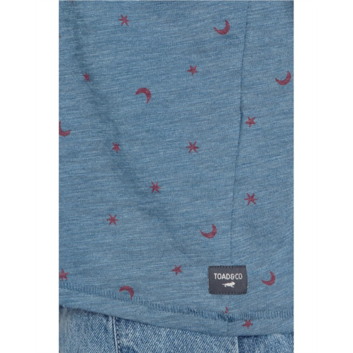 - Designed for your warm weather adventures and rides, the Toad&Co Boundless Jersey Short Sleeve Crew is crafted from slub jersey fabric that is garment dyed to offer a vintage look. The groovy rainbow screen print graphics on the back gives it an eye-catching appeal. This cotton tee features UPF 50+ protection that protects your skin against harmful sun rays. The short sleeves, dropped shoulders, and crew neckline with ribbed trim offer added comfort. Match your casual styles and laid-back looks with this printed tee.