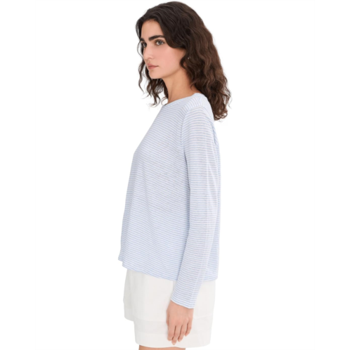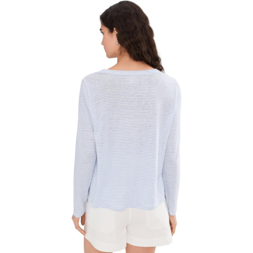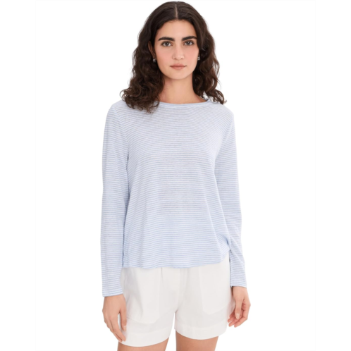 [US] Womens Eileen Fisher Striped Organic Linen Jersey Crew Neck Long Sleeve Tee