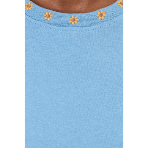 - The Toad&Co Re-Form Embroidered Crew T-shirt is a vintage-inspired tee made from a heavyweight recycled cotton polyester blend that offers all-day comfort. Its embroidered floral detail at the sleeves and ribbed neck trim offer a stylish appeal. This casual tee is designed with short sleeves, a crew neckline, and a straight hem. Match it with your trendy denim or casual shorts.