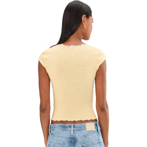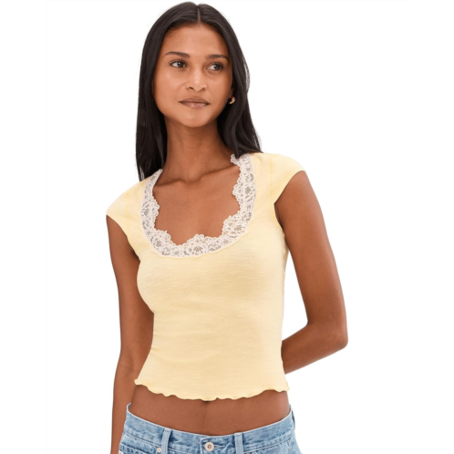 - Exude a cute look wearing the Free People Oh My Darling Tee. Intricate lace adorns the neckline of this flattering tee from intimately, featuring a wide square neckline with capped short sleeves and lettuce-edge trim.
