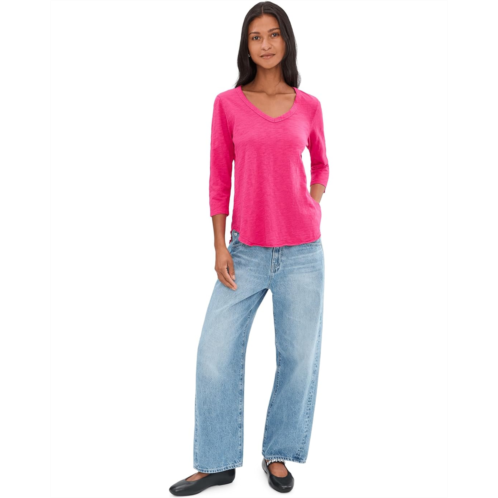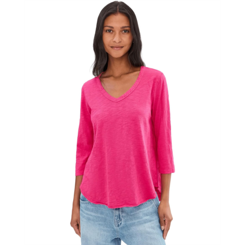 [US] Womens Mod-o-doc 3/4 Sleeve V-Neck Curved Hem Tee Shirt