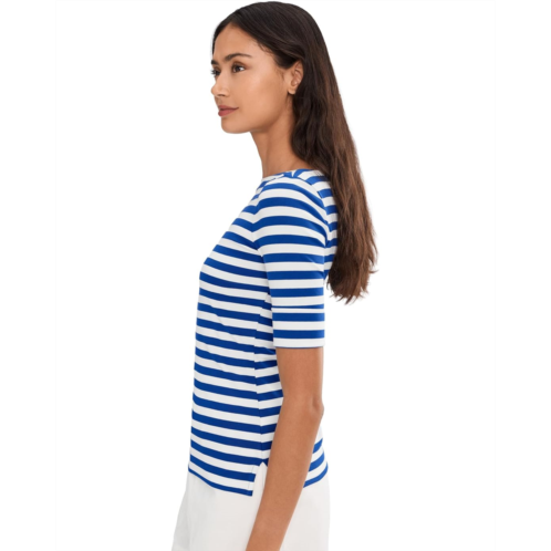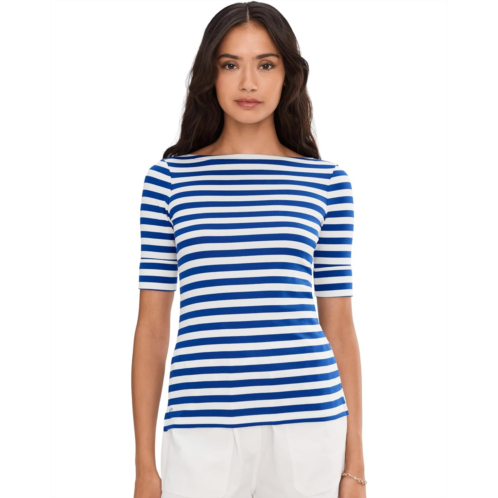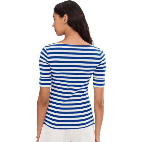 [US] POLO Ralph Lauren Womens Lauren Ralph Lauren Striped Stretch Cotton Boatneck Tee