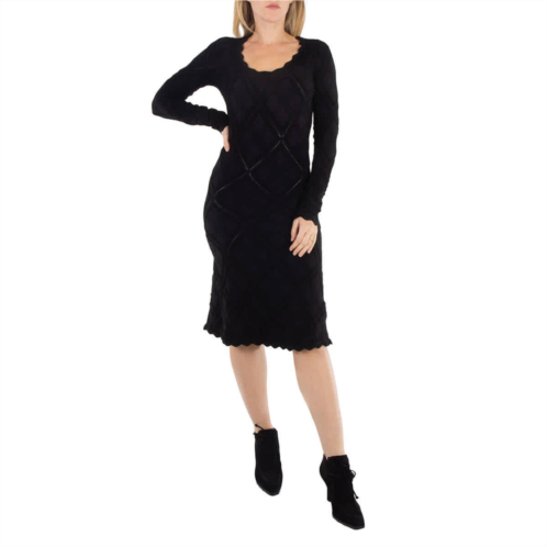 Burberry Ladies Dresses. Fashion category - Casual Dresses. SKU - 8084711. Material - Polyamide;Polyester;Wool. Color - Black. Burberry Aran Long-Sleeved Flared Knitted Dress. This knee-length dress is made from black stretch-wool, featuring a scoop neck, scalloped edges, long sleeves, and a flared hem. Wool 72%, Polyamide 18%, Polyester 9%, Spandex/Elastane 1%. Made in Italy.