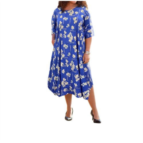 [US] On The Plus Side printed 3/4 sleeve edyth dress - Plus size in blue floral