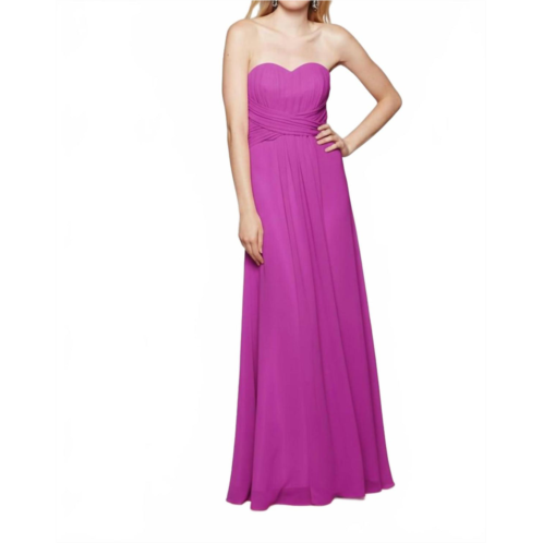 A maxi dress that is just as cute as it is comfortable.Introducing the Serenity Drape Strapless Gown by Milano Formals, an elegant choice for those who appreciate minimalist style. Made from lightweight chiffon, this gown in vibrant fuchsia features a strapless design with a ruched sweetheart neckline, creating a structured yet comfortable fit. The flowing maxi length and A-line silhouette ensure a flattering shape, while the solid pattern contributes to its timeless appeal. Ideal for weddings and formal events, this gown is crafted for spring occasions and should be dry cleaned and line dried to maintain its ethereal charm.