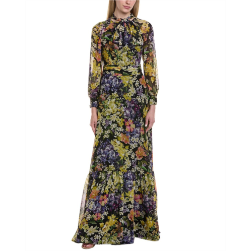 [US] Teri Jon by Rickie Freeman printed 3/4 sleeve maxi dress