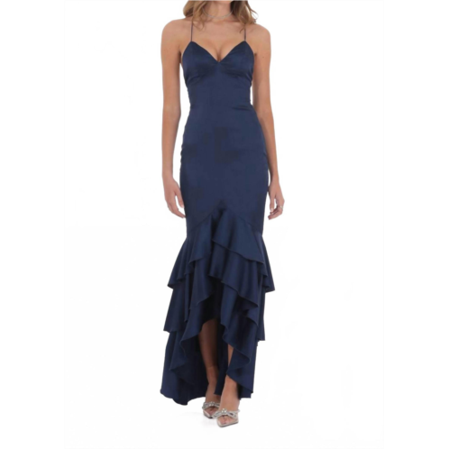 [US] Lucy in the Sky satin ruffle fishtail maxi gown in navy