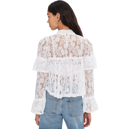 - So delicate with lace all over, the Free People Lilabeth Lace Top is featured in a mock-neck style with ruffled accents and a billowy bodice. It is crafted from sheer lace fabrication and unlined to highlight its airy texture. The long sleeves with flared cuffs add a touch of drama and elegance. The back is finished with button details.