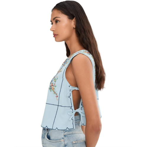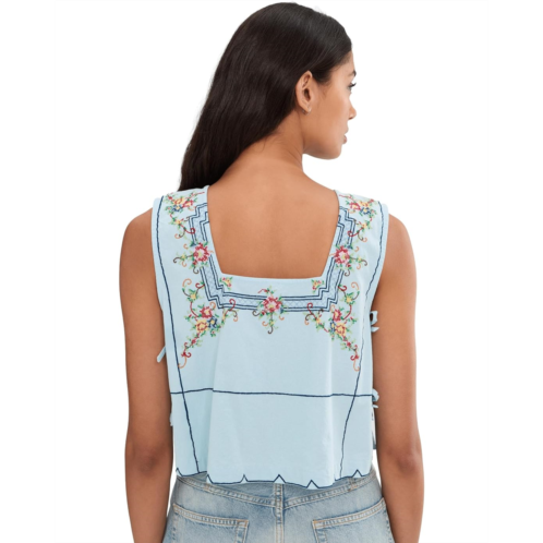 - The Free People Garden Wall Top is a stunning sleeveless piece designed in a cropped, boxy silhouette that feels both modern and chic. It features a high square neckline and delicate cross-stitch embroidery that adds artisanal charm. The open tie-sides lend a dainty, adjustable detail, making the fit playful and versatile.