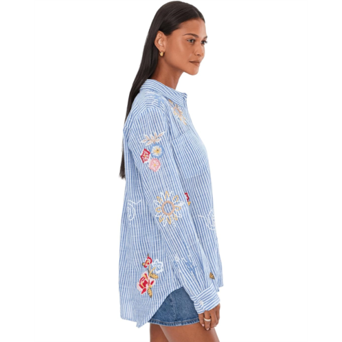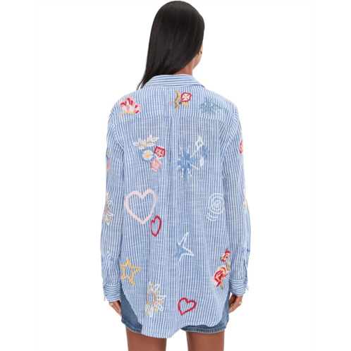 - From the desk to dinner, maintain your chic style wearing Karyn Seo Andee Shirt. The collared shirt features a full button-front closure, long sleeves with buttoned cuffs, beautiful floral embroidery, two patch pockets at the chest, and a shirttail hem.