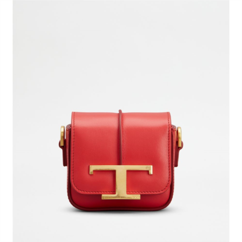 Micro bag in soft full grain leather, with central ribbing and branded metal T Timeless accessory. A decidedly on-trend accessory with dual wearability - by hand, with a chain enhanced by branded charms, or with the adjustable shoulder strap in leather.