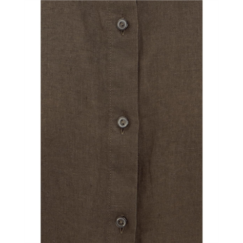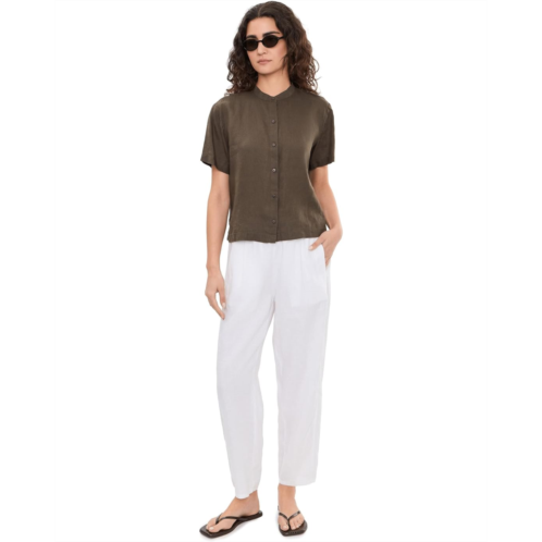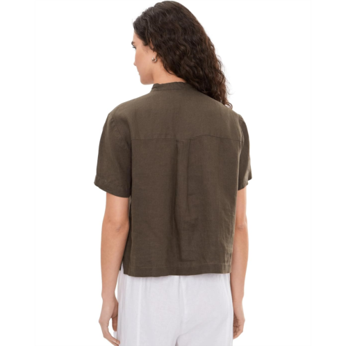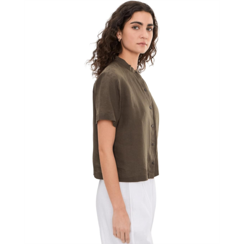 [US] Womens Eileen Fisher Organic Handkerchief Linen Mandarin Collar Short Sleeve Shirt