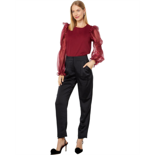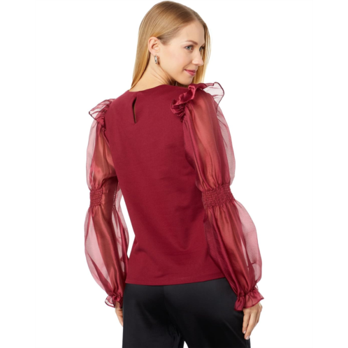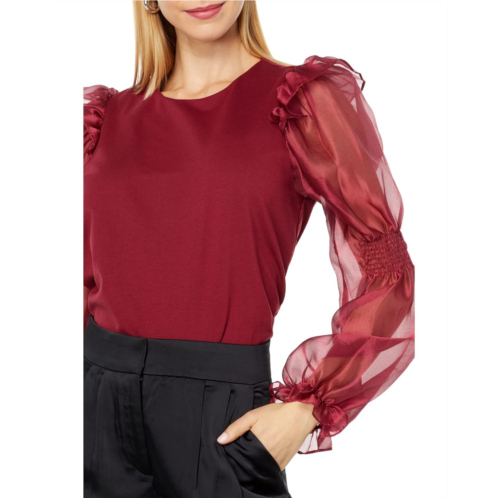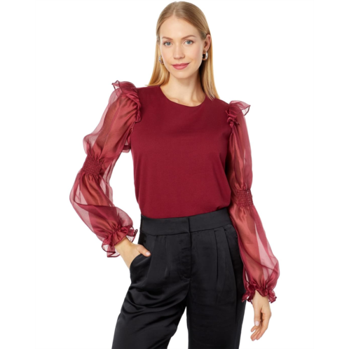 [US] Womens English Factory Organza Mixed Smocked Detail Long Sleeve Top