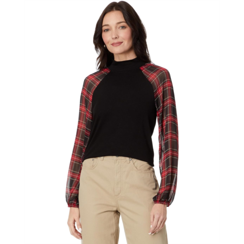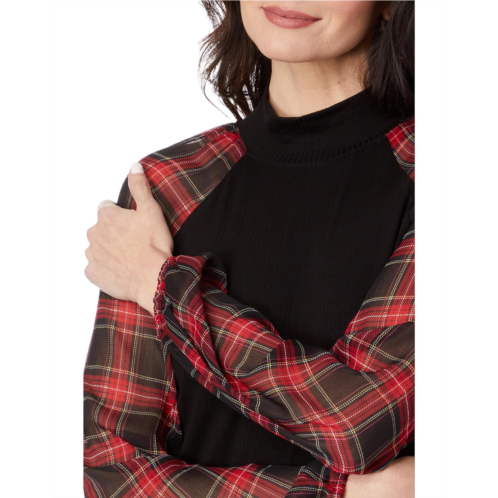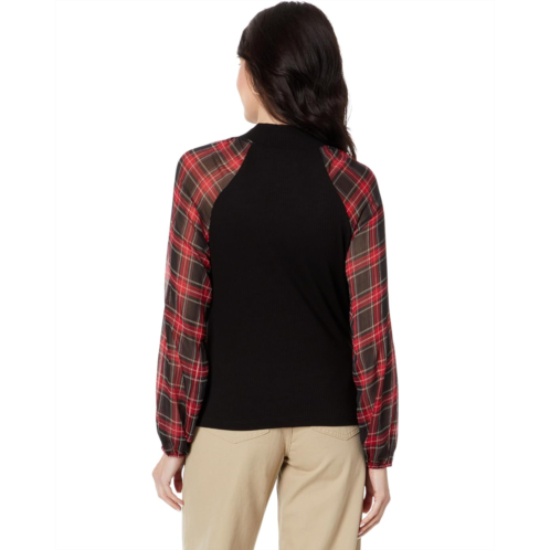 - Keep the fashion game on point as you head out wearing the chic and comfy Tommy Hilfiger Long Sleeve Mixed Media Top. The top features a mock neck, long sleeves with elasticated cuffs, and a straight hem. The checkered print on the sleeves creates a distinctive style.