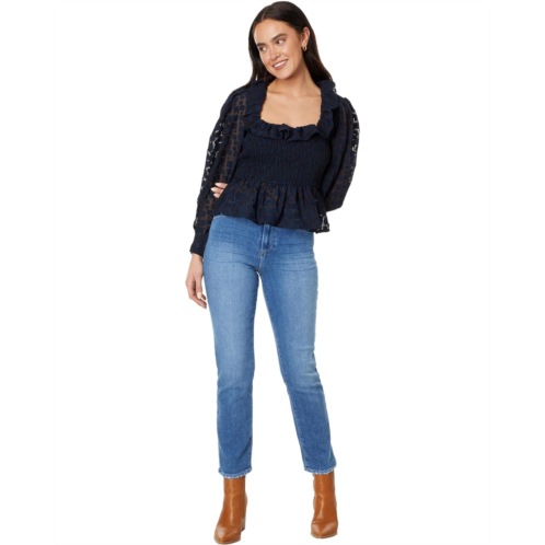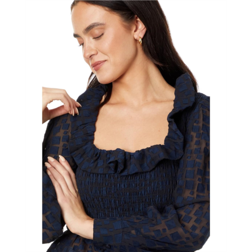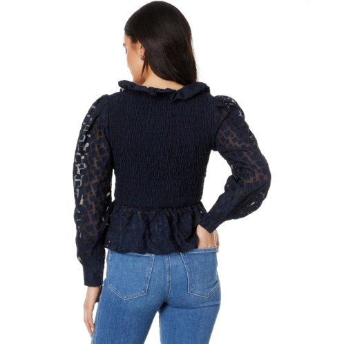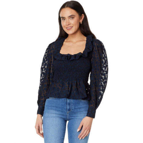 - The en saison Bowie Organza Top is beautifully designed with a squared neckline with ruffled details all around the neck and a smocked fit for a flattering vibe. The top features long sheer puff sleeves with banded cuffs and a sheer hem.
