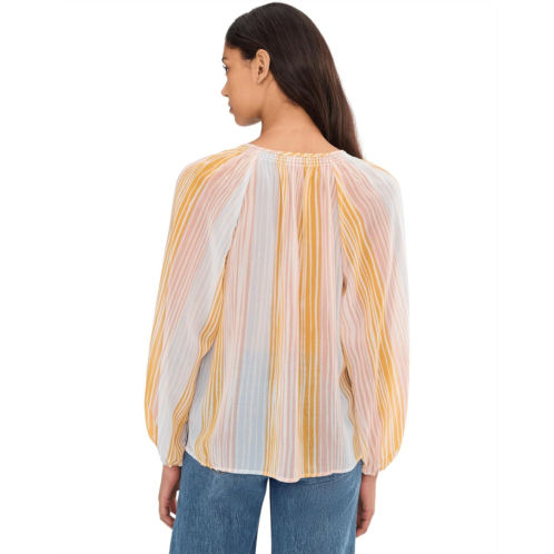 [US] Womens Vince Camuto Tie Neck Shirring Long Sleeve