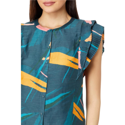 - Upgrade your chic and smashing look donning the Vineyard Vines Flutter Sleeve Pintuck Top. The allover iconic print top features round neckline, button front closure, and double flutter sleeves for a charming touch.