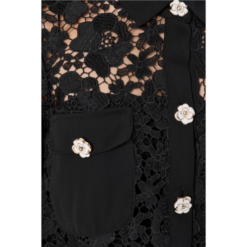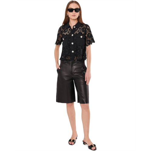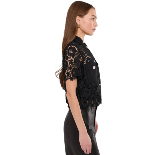 [US] Womens CeCe Patch Pocket Short Sleeve Lace Button Down