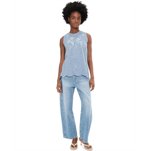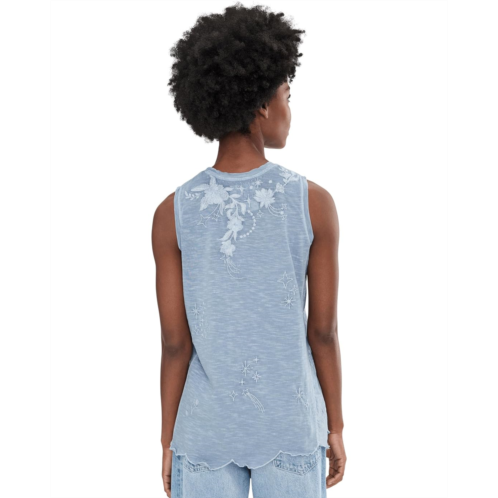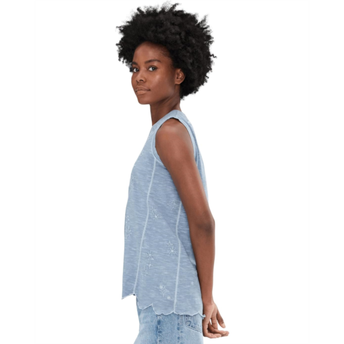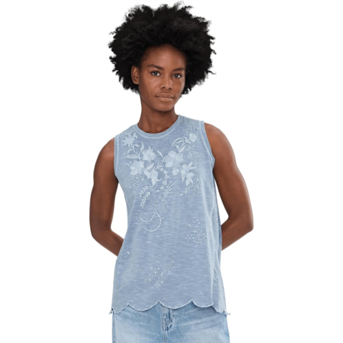- With its casual style and beautiful tonal embroidery, the Karyn Seo Nell Tank elevates your fashion game. The pull-on style tank top features a crew neck, a sleeveless design, and a scalloped hem.