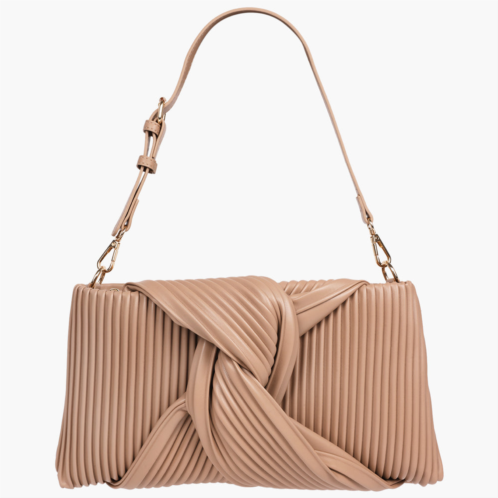 Elevate your look with the Jason Wu Pleated Knot Clutch with Shoulder Strap a statement piece that blends sculptural design with modern sophistication. Crafted with pleated detailing and a bold knot accent, this clutch doubles as a shoulder bag thanks to its detachable strap. The sleek elongated silhouette is perfect for both day and evening, while the zip closure and interior compartments keep your essentials secure and organized. Stylish, versatile, and refined, it’s an accessory that completes any outfit.-Officially licensed Jason Wu Bag-9' - 11' adjustable removeable Shoulder strap dorp-Gold Hardware-Zipper closure-Interior backwall zip pocket, Front wall slip pocket-Material Shell - 100% polyurethane, Linning 100% polyester-Dimension - 7H X 13.5W X 2D-Weight 1 lbs.-Imported