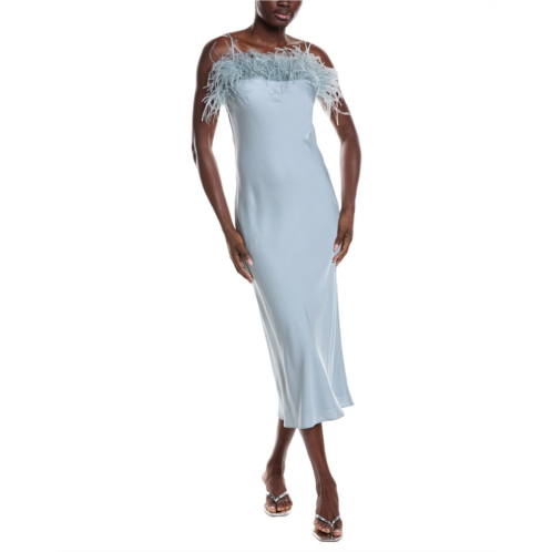 - Odette Dress In Slate Blue With Square Neck, Adjustable Spaghetti Straps, And Feather Accents