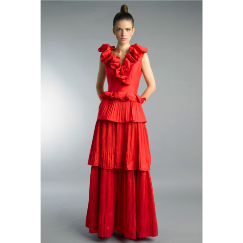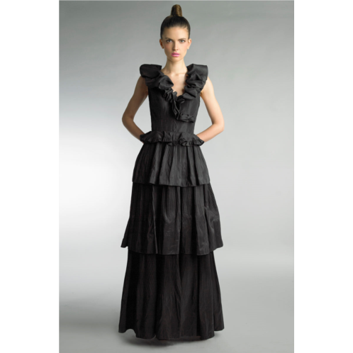 Puff collar multi tier evening dress