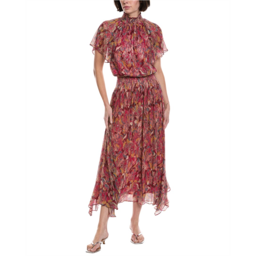 Elevate your eveningwear with the Ramy Brook Jerry Gown in a mesmerizing multi marble print. This stunning gown features a smocked mock neck, smocked waist, and flutter sleeves for a feminine touch. The lightweight fabric drapes elegantly, creating a flattering silhouette that is perfect for any special occasion.The Ramy Brook brand is known for its use of luxurious silk fabrics, vibrant colors, and sophisticated designs. The Jerry Gown is no exception, with its eye-catching print and intricate details. This gown measures approximately 57 inches from shoulder to hem and is available in sizes ranging from XS to XL. The model is 5'9' and is wearing a size XS, but please note that measurements may vary slightly by size.Crafted from a blend of polyester and metallic fibers, this gown is both comfortable and stylish. The hook-and-eye closure adds a touch of glamour, while the lined interior ensures a smooth and flattering fit. Dry clean only, this gown is imported and perfect for making a statement at your next event.