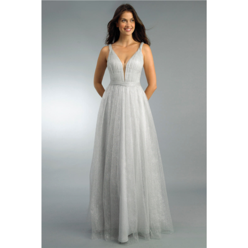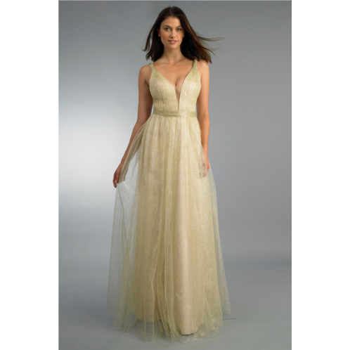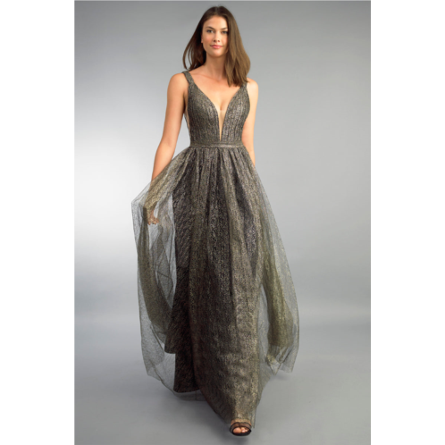Metallic lace sleeveless v neck gown