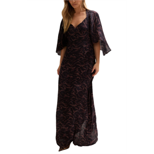 [US] Lily and Lionel London womens lydia angel sleeve midnight tiger print maxi dress