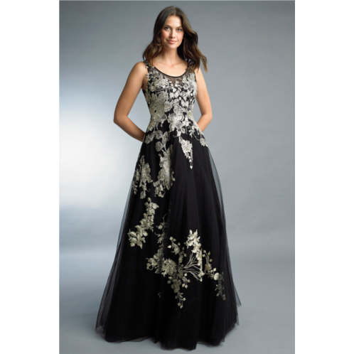 Gold leaf floral embroidered sleeveless gown