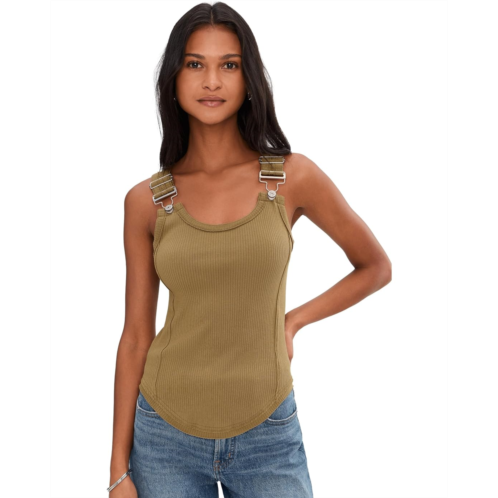 - A staple tank gets a touch of edge with this hardware-adorned style from We The Free, featured in a ribbed fabrication with overall-inspired straps for an unexpected accent. The metal details take this tank to the next level.