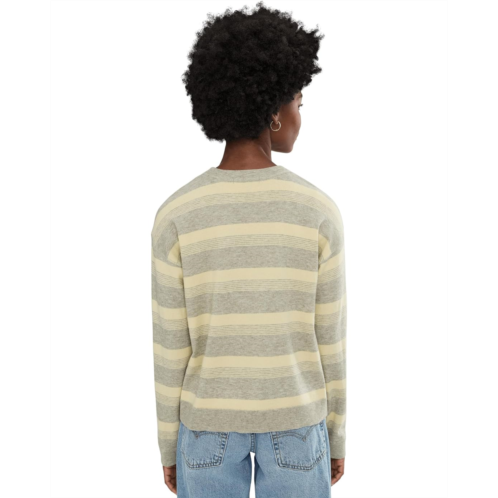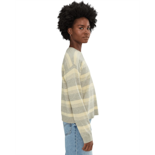 - Textured knit sweater flaunts contrast panels and trim for sleek style.