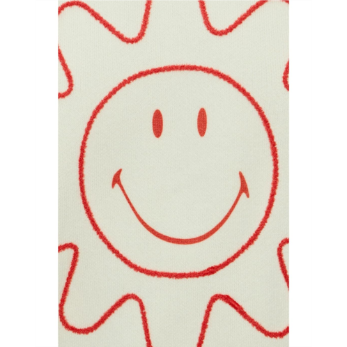 - Brighten your cozy days with the Barefoot Dreams CozyChic Ultra Lite Cotton Smiley Sun & Stars Pullover, crafted from signature lightweight CozyChic Ultra Lite cotton blend for breathable softness and easy layering. This relaxed-fit pullover features a stunning sun applique adorned with an embroidered smiley face at its center, surrounded by delicate stars screen-printed across the fabric for a celestial touch. Finished with ribbed trims at the neckline, bottom hem, and sleeve openings, this pullover offers a polished yet cozy fit. It is styled with long sleeves, a crew neckline, and a straight hem. A unique patch detail sewn with zig-zag stitching at the bottom of the sleeve adds subtle texture and character.