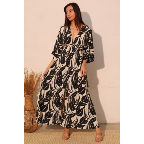 [US] TRUEDAMES lucca leaf kimono maxi dress