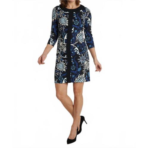 The perfect mini dress for those warmer months.Introducing the Azores Dress by CK Bradley, a chic frolic black mini made for standout style. This women's shift dress features a crewneck and three-quarter sleeves, with bold black ribbon details to elongate the silhouette. Crafted for holiday parties, it offers a playful floral pattern and a convenient zip closure. Care instructions advise dry cleaning to maintain its elegant design.